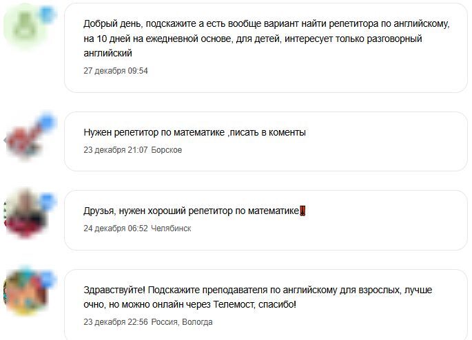 Система автоматически собирает сообщения по заданным запросам, где люди ищут услуги или товары.